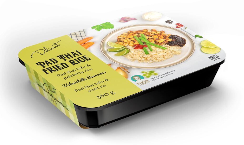 Deliciest Tofu Pad Thai paistetulla riisillä tuo Aasian maut suoraan pöytääsi muutamassa minuutissa. Rapea tofu, värikkäät kasvikset ja täyteläinen Pad Thai -kastike yhdistyvät herkulliseen paistettuun riisiin. Valmistettu laadukkaasta Mama Mem’s tofusta. Löydät Suomessa valmistetun, 100 % kasvipohjaisen aterian pakastehyllyltä.